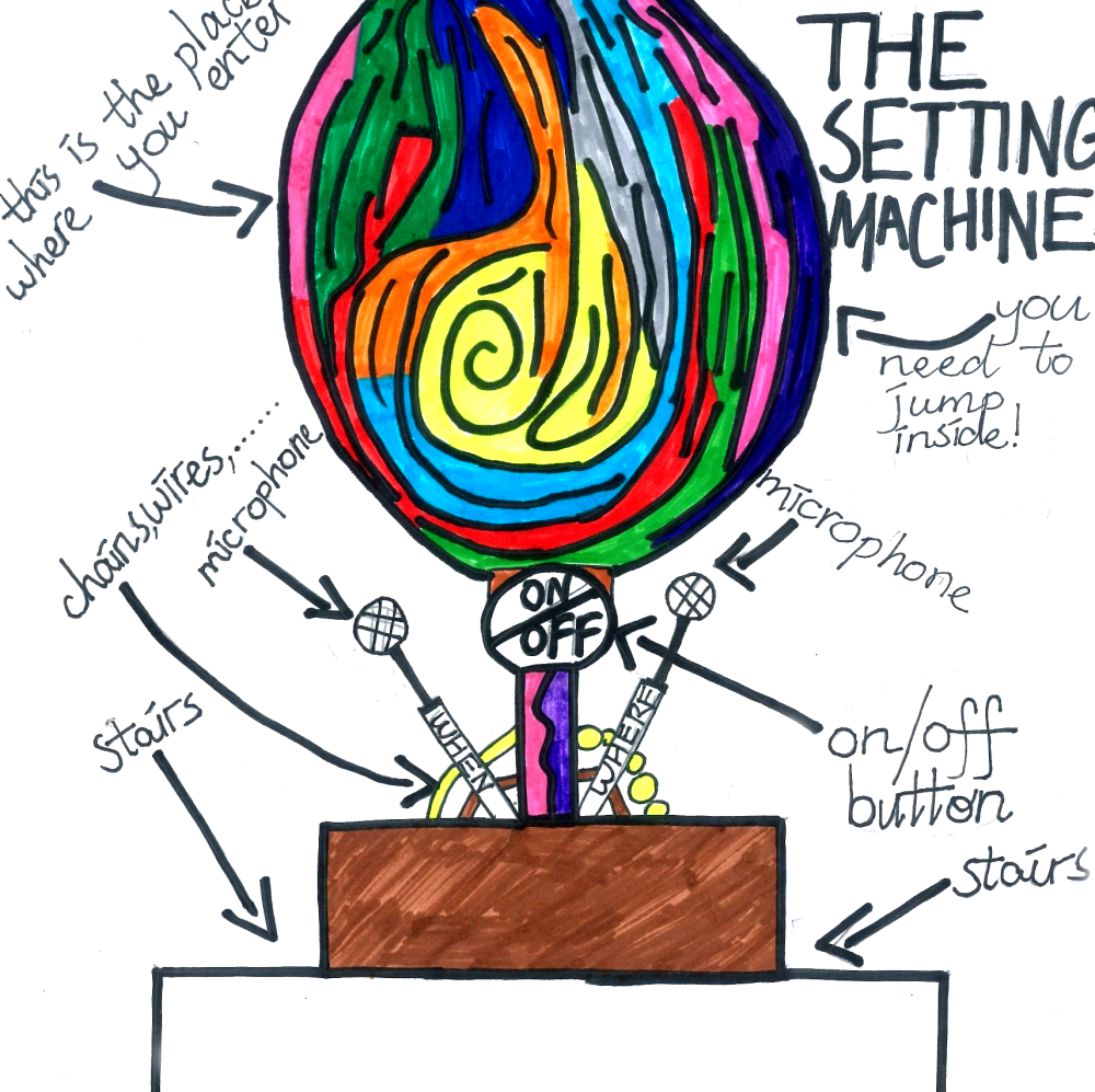 The Setting Machine is beautifully colourful Sophie and you have provided such an in-depth explanation! The concept of time travel is so exciting, I like that you can clearly and simply speak into the microphone to describe where you want to go, this minimises the chance of any issues that could land you in completely the wrong location! I also like that the machine can carry more than one person, you don't have to go on a time-travelling adventure alone! Thank you Sophie and keep inventing.