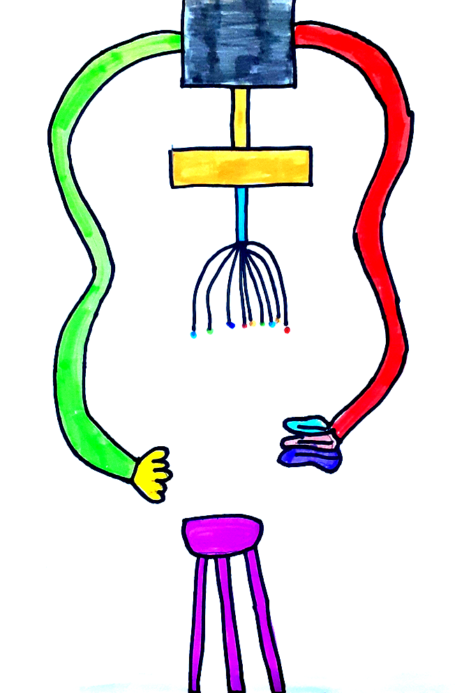 I think The Tickler would be a great solution to anyone feeling a little down Thomas. An automated machine would mean that lots of people could use it too! Robot hands and feathers would make things extra tickly, if you are super ticklish it would be impossible not to smile and laugh! I really like all of the bright colours you have used in your drawing, The Tickler not only does the job but it also looks brilliant. Well done Thomas, keep inventing!