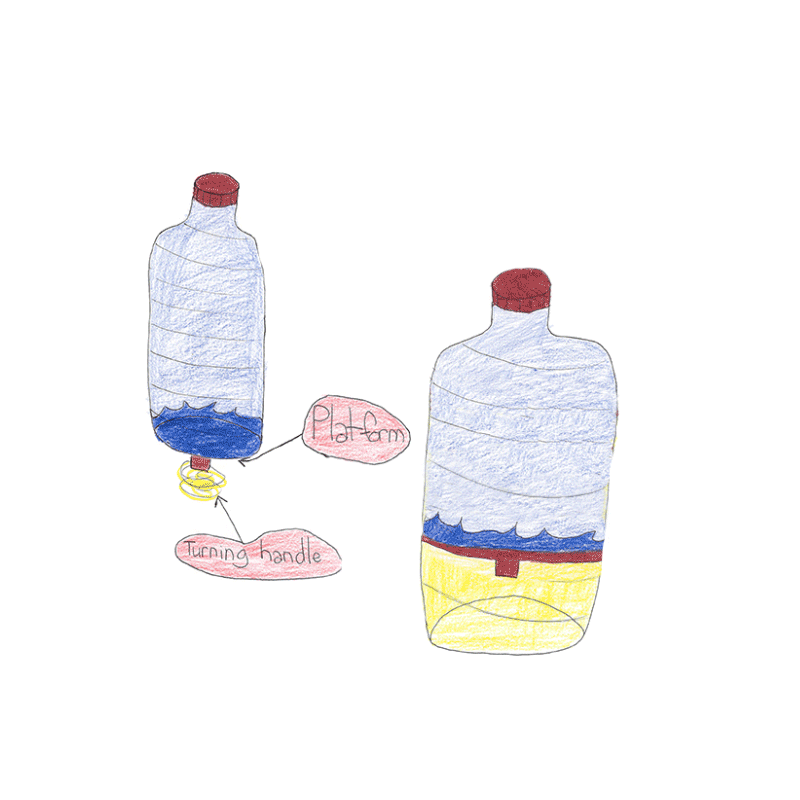 The Turning Bottle, designed by Olivia and made by Andrew Aitken at Makerlabs in Vancouver.
