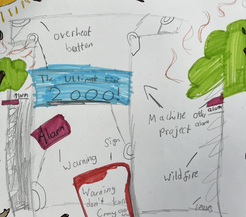 What a brilliant idea, Daisy! 🌟 Your "Ultimate Fire 2000" invention sounds super helpful for keeping everyone safe from wildfires. You've thought of some clever features with the giant pillar and alarm system. Have you considered adding solar panels to keep it powered even in remote areas? Keep up the fantastic work, and who knows, you might actually save the day with this invention! 🌈