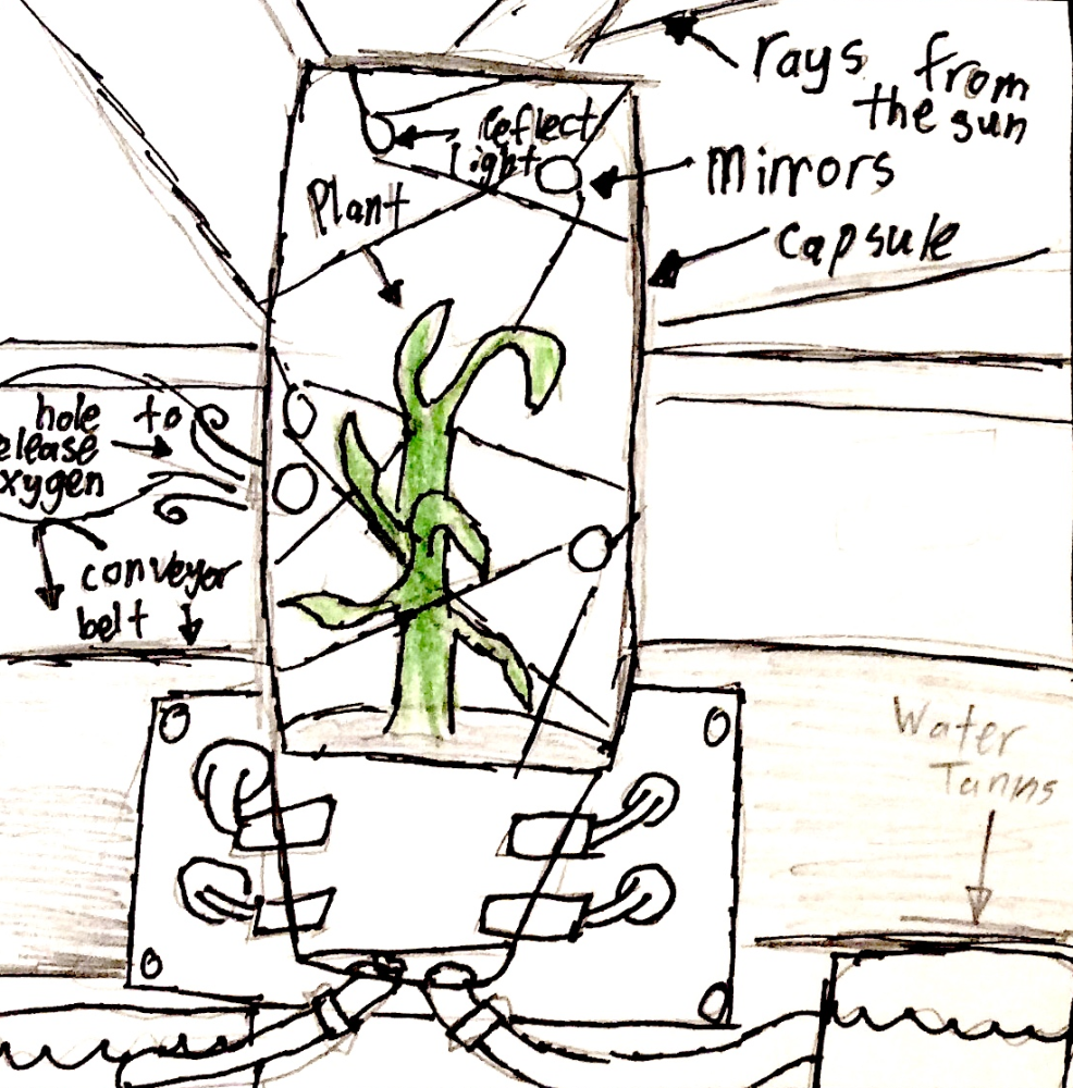 Joshua's space makers worked together to create prototype of Joshua's U.V. plantation invention. It has light reflecting properties to encourage photosynthesis! Click on the 'maker blog' tab to find out how they brought the idea to life!