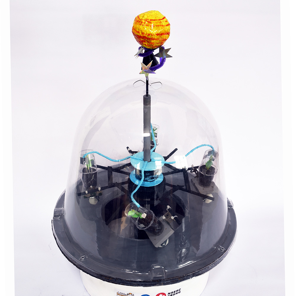 Description This making process is turning out to be very fun and very hard. I had a go at making a conveyor belt but it turned out to be difficult without access to precision instruments, so I spoke to another tinkerer (my friend Darren Kent from Spitfire Architecture) and we agreed that instead of a conveyor belt, maybe I could make a track of some kind, and run the plants around it on some kind of carousel. I got a hat box and painted white for the base. On the hat box sits a ring-shaped track. The plant capsules will be attached to castors so they travel around the track. These capsules will be like horses on a carousel-like structure, which will be powered from the top (or possibly from the bottom, depending on what works best), by a battery-powered motor (designed for spinning garden ornaments). The whole thing will be covered with a massive plastic cloche (the type you can use to cover seedlings) and this will act like the dome of my rocket. I am hoping to make it look like a kind of space plantation inhabiting the upper storeys of a dome-shaped nose-cone, with little astronauts moving around underneath. Wish me luck!
