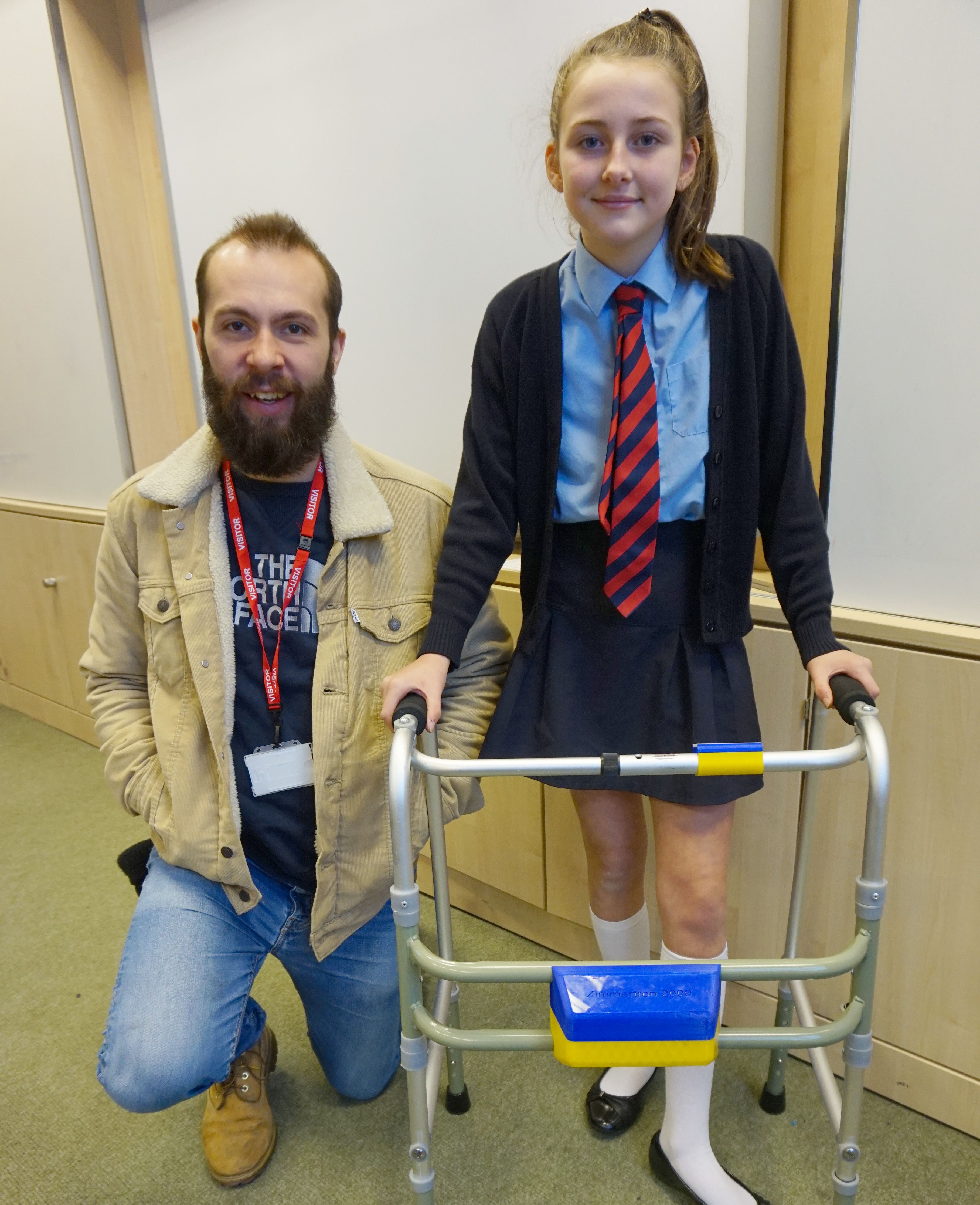 Emma came up with the idea for the Zimmertron 2000 after her great aunt was involved in an accident involving a car and her zimmerframe, and so she decided that she decided to create a way to make a Zimmerframe more safe.