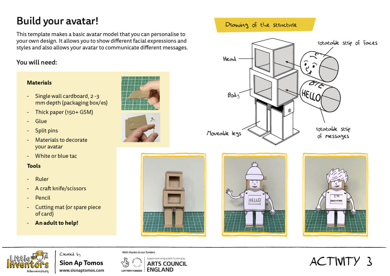 Use simple materials to make a 3D version of your avatar. Get an adult to help you with the cutting out.