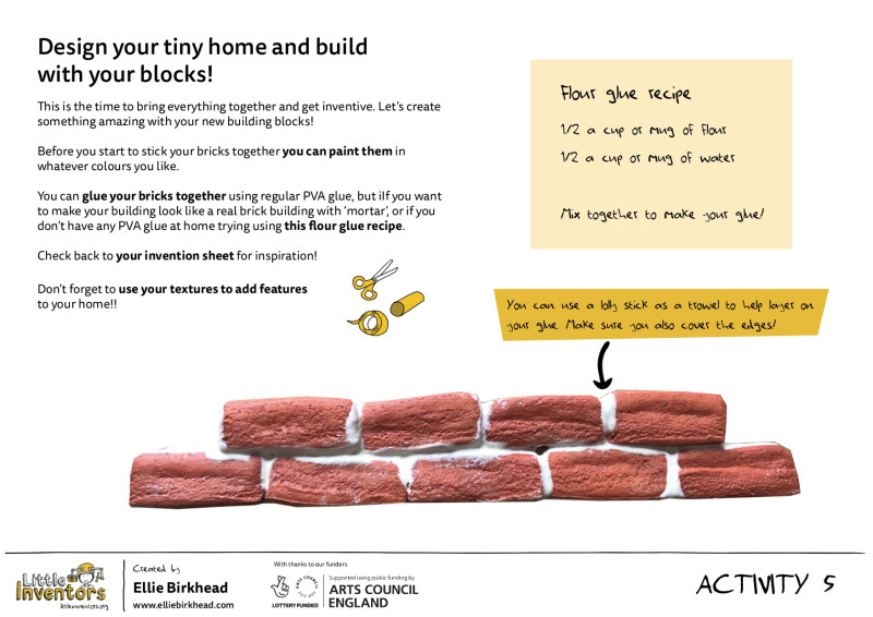Using your bricks and recycled materials you find at home create a model of your tiny house invention.