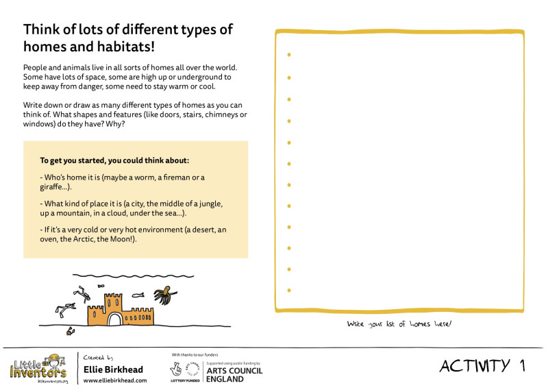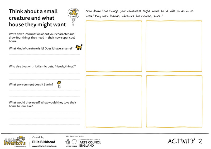 Explore who your tiny creature or person that lives in your house is. Think about what they like to do or want to have in their house. It could be a tiny person or creature or a made up character from your imagination.