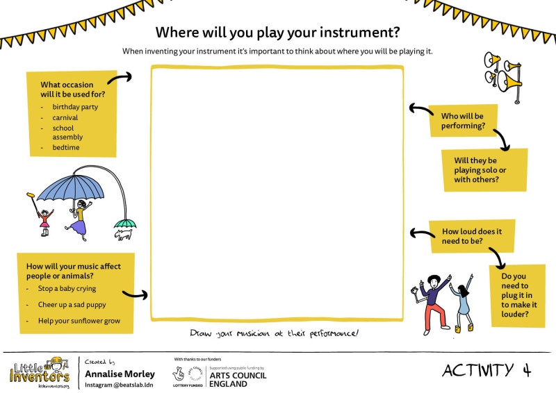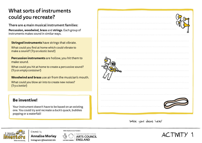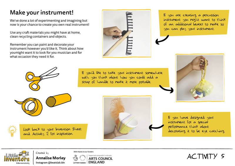 Now it's time to get making! What will your instrument look like? How will it be played? Can you make something you've never seen or heard before and be a real inventor?!
