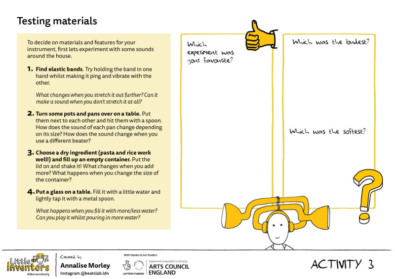 This activity is all about getting creative and starting to make some noise. Different materials make different sounds, have fun with these experiments and listen carefully!