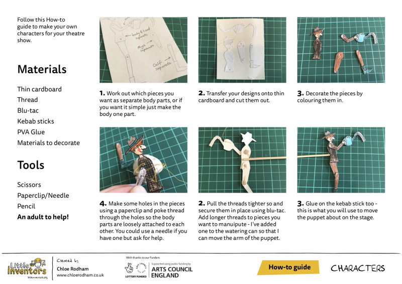 Now you have made your theatre and planned out your play, you need some actors, create your own characters and make into puppets.