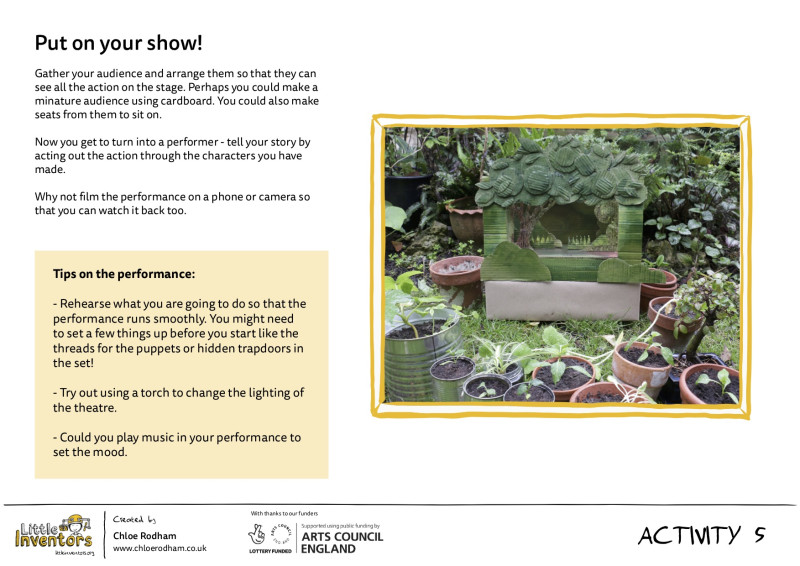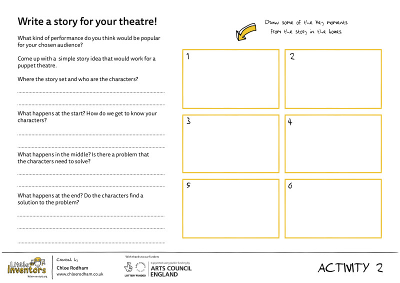 Perform your play for your chosen audience, you might need to make them out of card or paper too. Take a photo of your theatre and audience and share it with us by uploading it with your invention sheet, don't forget you could be selected to win a Little Inventors book.