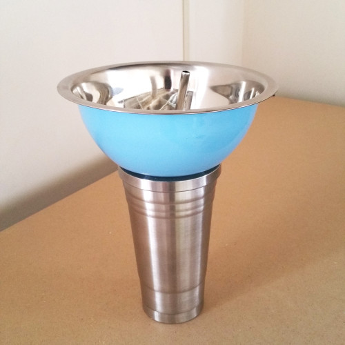 I've bought a cup and a bowl, measured up a spacer so they can be stuck together and made a hole for the straw.