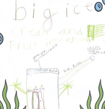 I started by making the first half of the ice cream and fruit invention with it looking almost like an ice cream shop mixed with Willy wonkas factory. I made a counter and then modelled some piles of ice cream out of clay and painted them to make them seem a bit more realistic and added a hot glue border to make it seem a bit neater. I then made the ice cream machine and covered it in tin foil to create the metallic futuristic type look. I then connected the machine to the ice cream with silicone tubing filled with coloured piping gel to give the look that the machine is pumping ice cream into the counter ready to be eaten.