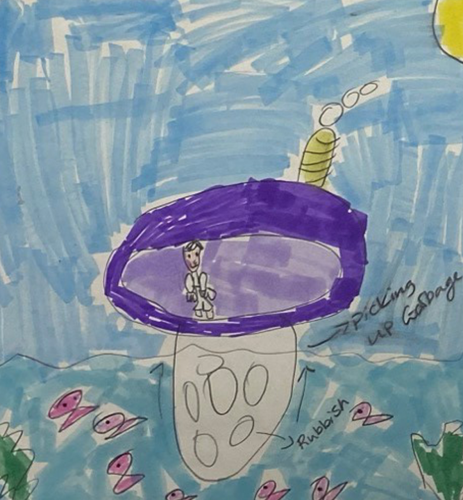 After I made the parts individually I glued them altogether just like how it is in the invention drawing. The waste collector was attached to the bottom of the cabin.