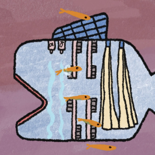 I've been watching the BBC for more fish movement inspiration! What caught my attention was the Mola Mola, the largest bony fish, it looks really cool so I wanted to have it in the animation. A big friendly fish swimming near the scrub-a-bub-bub I think really elevates the atmosphere. Animating fishes swimming across the screen is really satisfying, I can't wait to see the pieces all together.