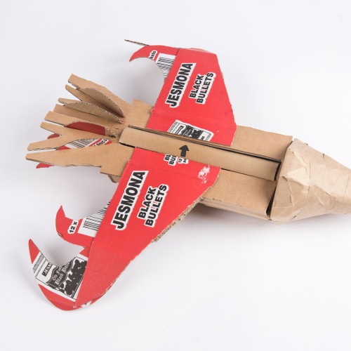 Here are some pictures of how I made a cardboard prototype of the phoenix drone. I added red wings that look like flames and created a compartment to carry the medical supplies. I used an old Jesmona sweets box for the wings as it is a vibrant red colour.