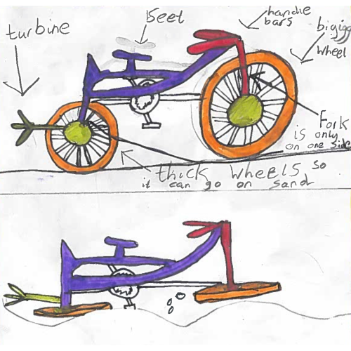 I have hand rendered the amphibious bike invention as well as making a scale model of it.