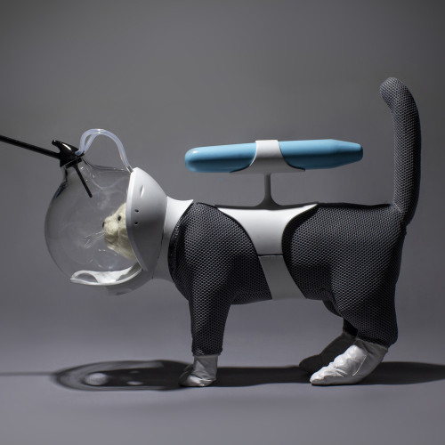 We are working on prototyping the helmet for the space cat suit. The cardboard model is helping us understand how to connect the glass orb to the suit, this component will be 3-D printed. The rest of the suit will be a snug fitting soft shell, the materials of which are being figured out.
