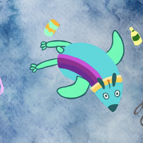 With Linden's help, I designed the S.O.R. with bright colours that help signal other animals for danger! The eyes have dots around them that help scan other animals, it has a bag inside its belly to collect the trash and is a really good swimmer!