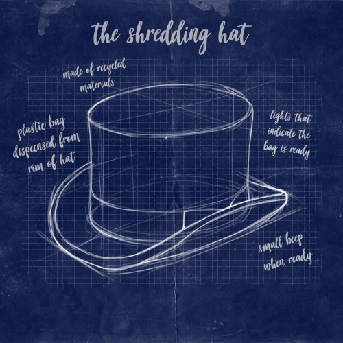 I have also drawn angles of the hat in the style of a 'technical drawing', so that I can scan them in, and use them as a base plate to extrude a 3D object from, within After Effects and Cinema 4D.
