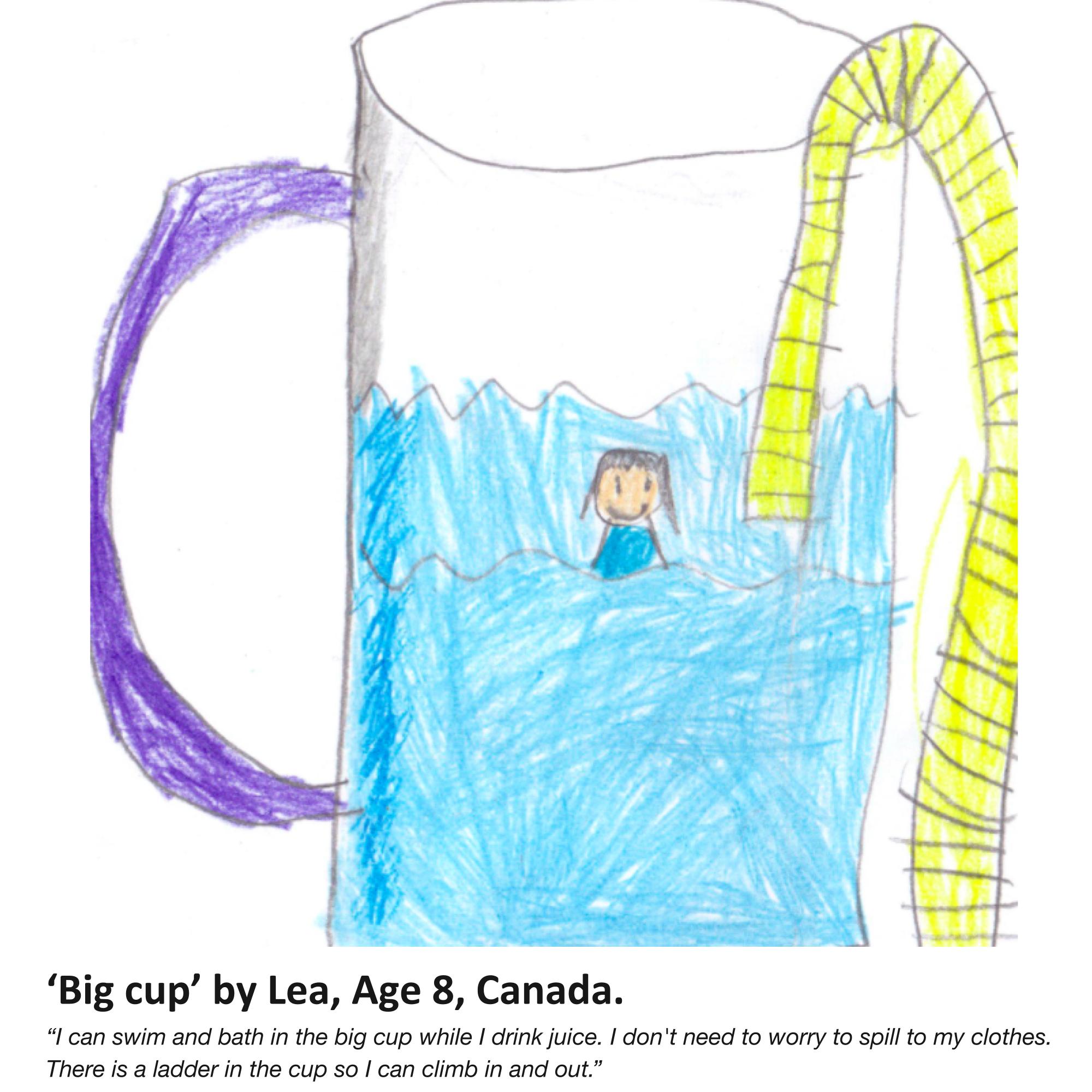 Imagine something in your house that you could swim in. Big or small. draw yourself swimming in it!