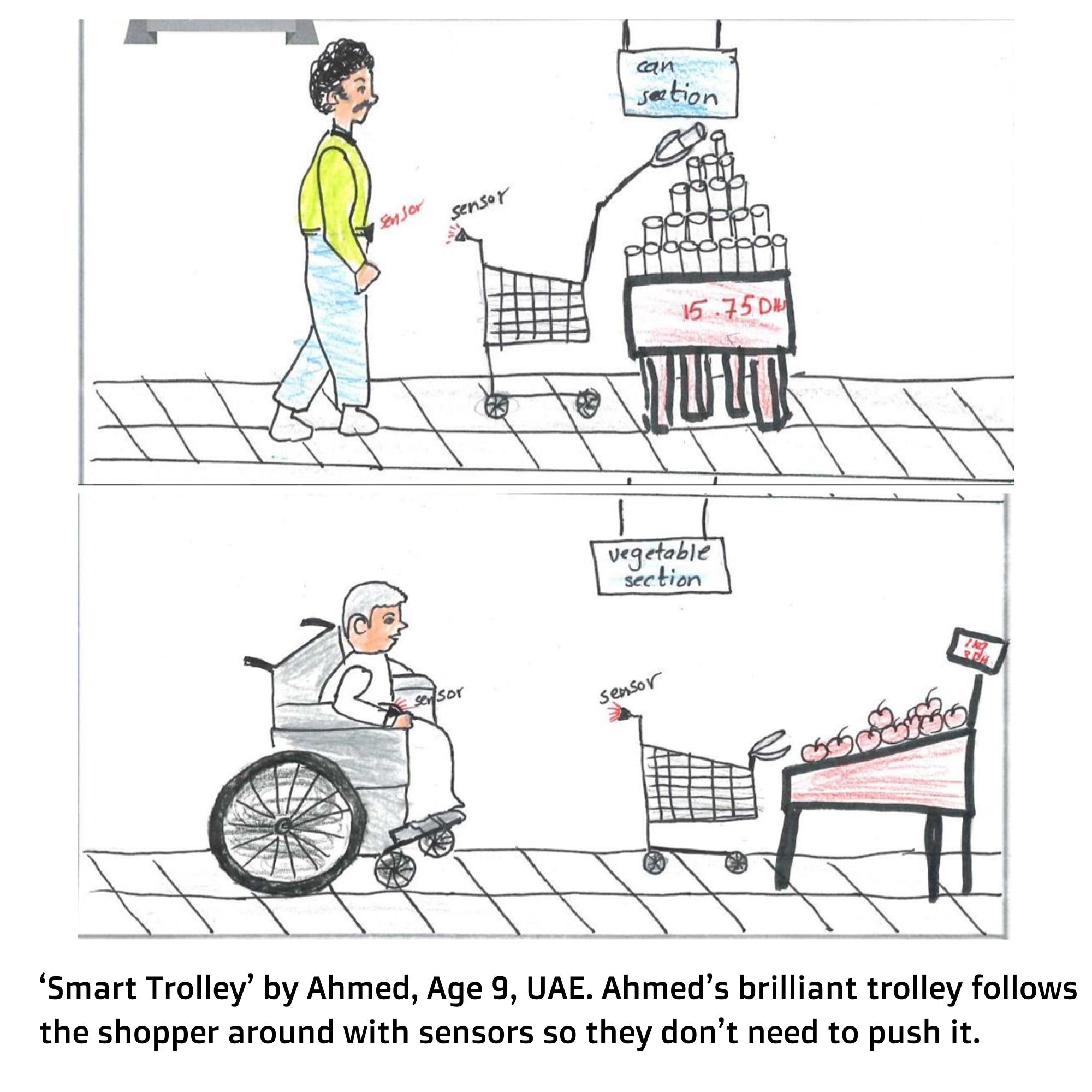 Design the most amazing shopping trolley that can help us shop safely in supermarkets